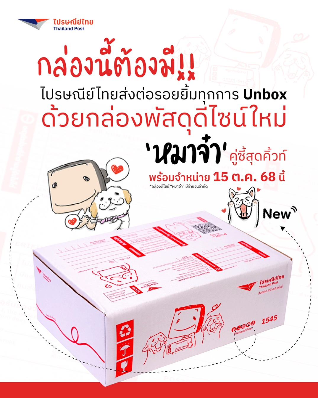 บริษัท ไปรษณีย์ไทย จำกัด เดินหน้าสร้างความสุขและรอยยิ้มผ่านทุกการส่ง เปิดตัวการคอลแลบพิเศษกับเพจ “หมาจ๋า” เจ้าของคาแรกเตอร์สุนัขแสนอบอุ่นที่ครองใจแฟนคลับบนโลกออนไลน์มา สู่ผลงานดีไซน์พิเศษ “กล่องไปรษณีย์ลายหมาจ๋า” รุ่นลิมิเต็ด เอดิชัน “คู่หู คู่ซี้ คอลเลคชัน Post & Paw Collection” ผสานความเป็นแบรนด์แห่งความผูกพันของไปรษณีย์ไทย เข้ากับเสน่ห์ของคาแรกเตอร์หมาจ๋า ที่ถ่ายทอดเรื่องราวแห่งมิตรภาพระหว่างพี่ไปรฯ กับเพื่อนซี้สี่ขาที่อยู่เคียงข้างกันในทุกเส้นทางการเดินทางของพัสดุ และทุกความรู้สึกที่ส่งต่อถึงกัน