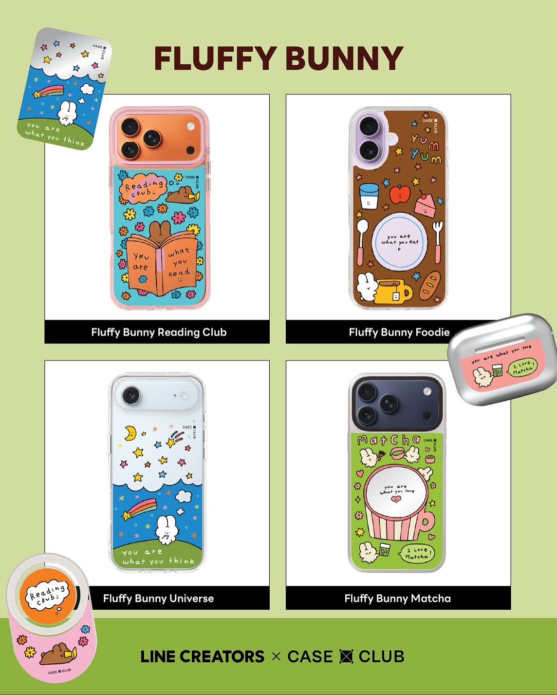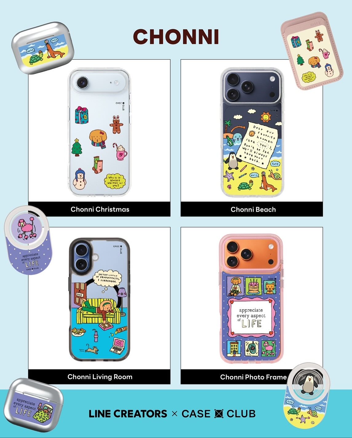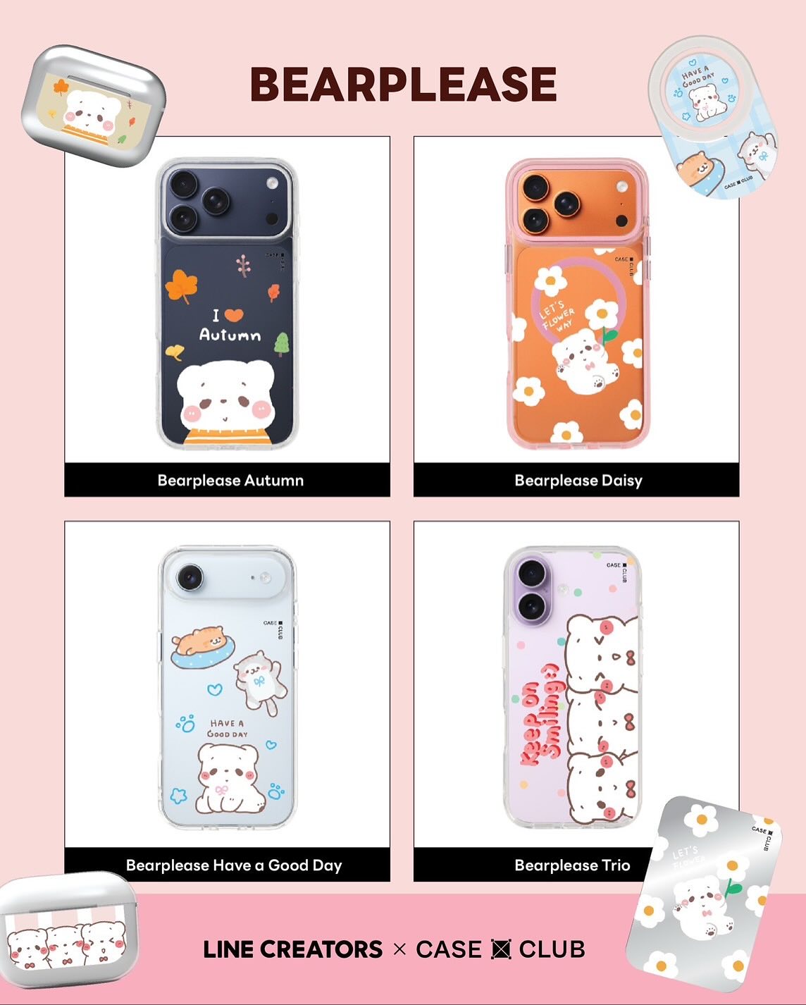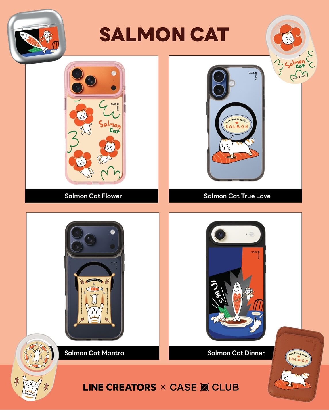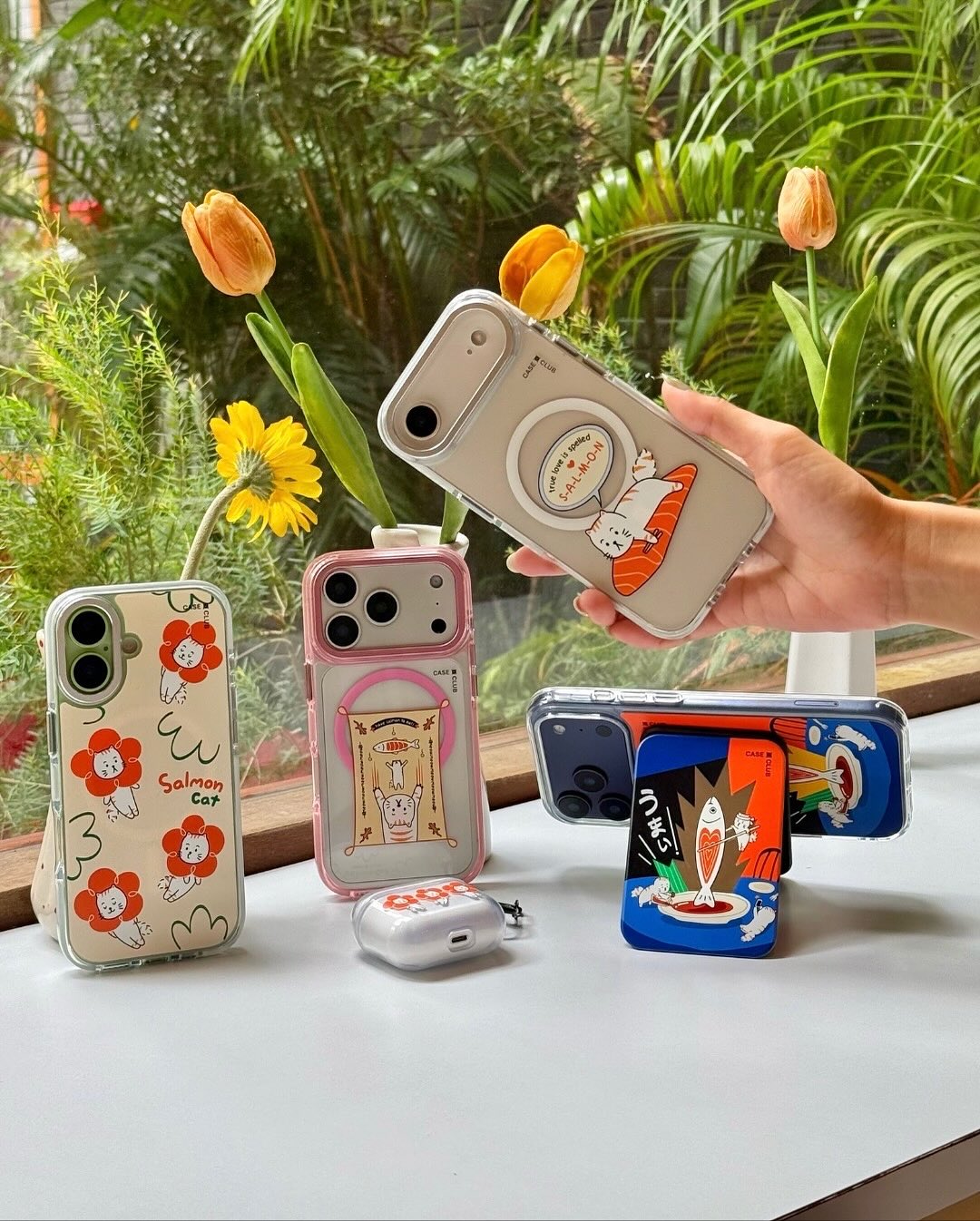 Explore 24 adorable character case designs featuring fan-favorite creators like Salmon Cat, Bearplease, Ghost Club, Fluffy Bunny, HUTO, and Chonni.